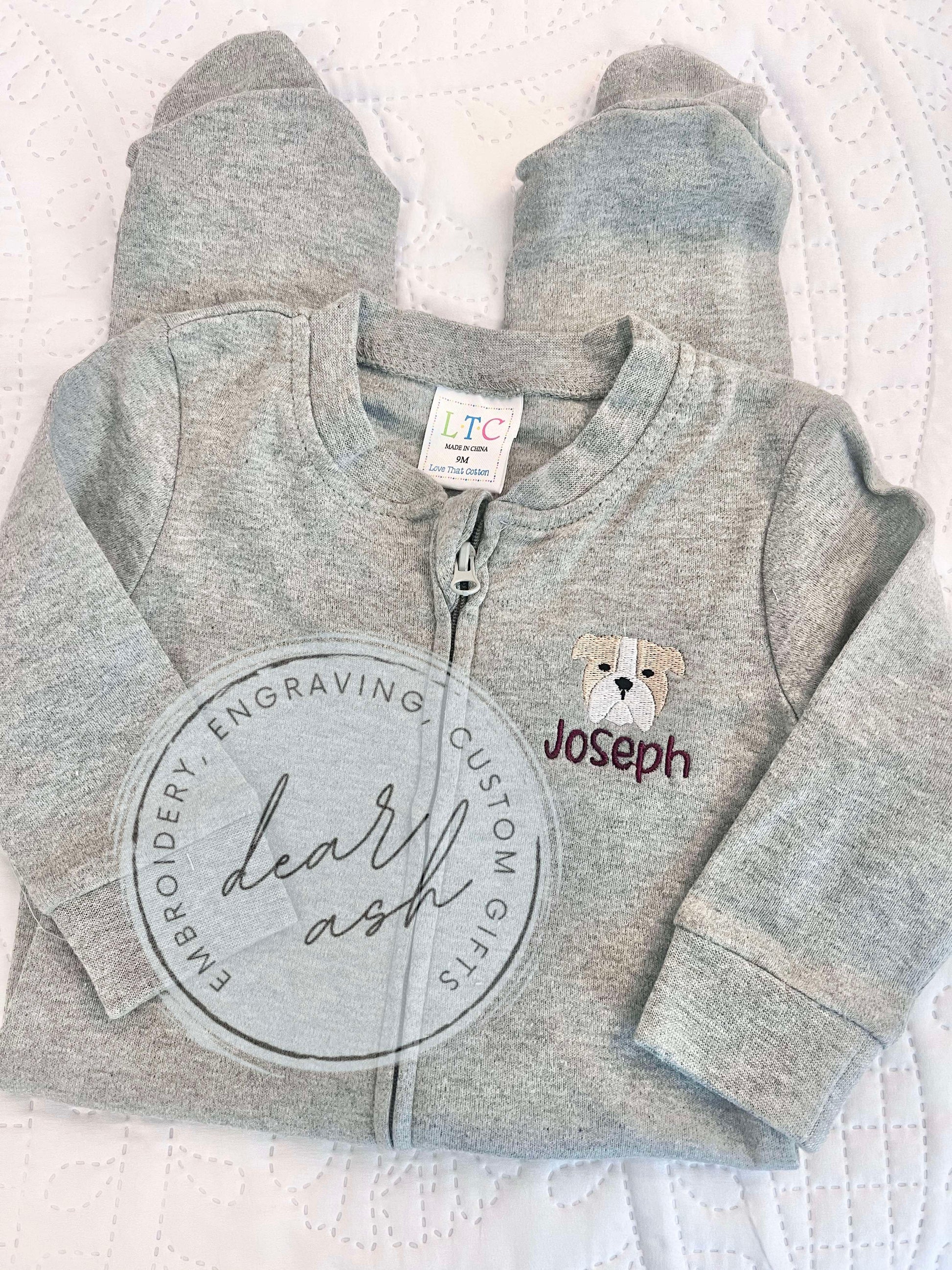 Sweet little zipper footies for your little! Please email or message me if you need another team. In the text box, include the name for the footie.