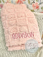 The perfect soft blanket! These are 30"x39"...perfect for carseats, strollers, or just a small blanket for your kiddo! Choose from 6 colors-purple, dark pink, cream, blue, grey, or blush. Addison's example is blush.
