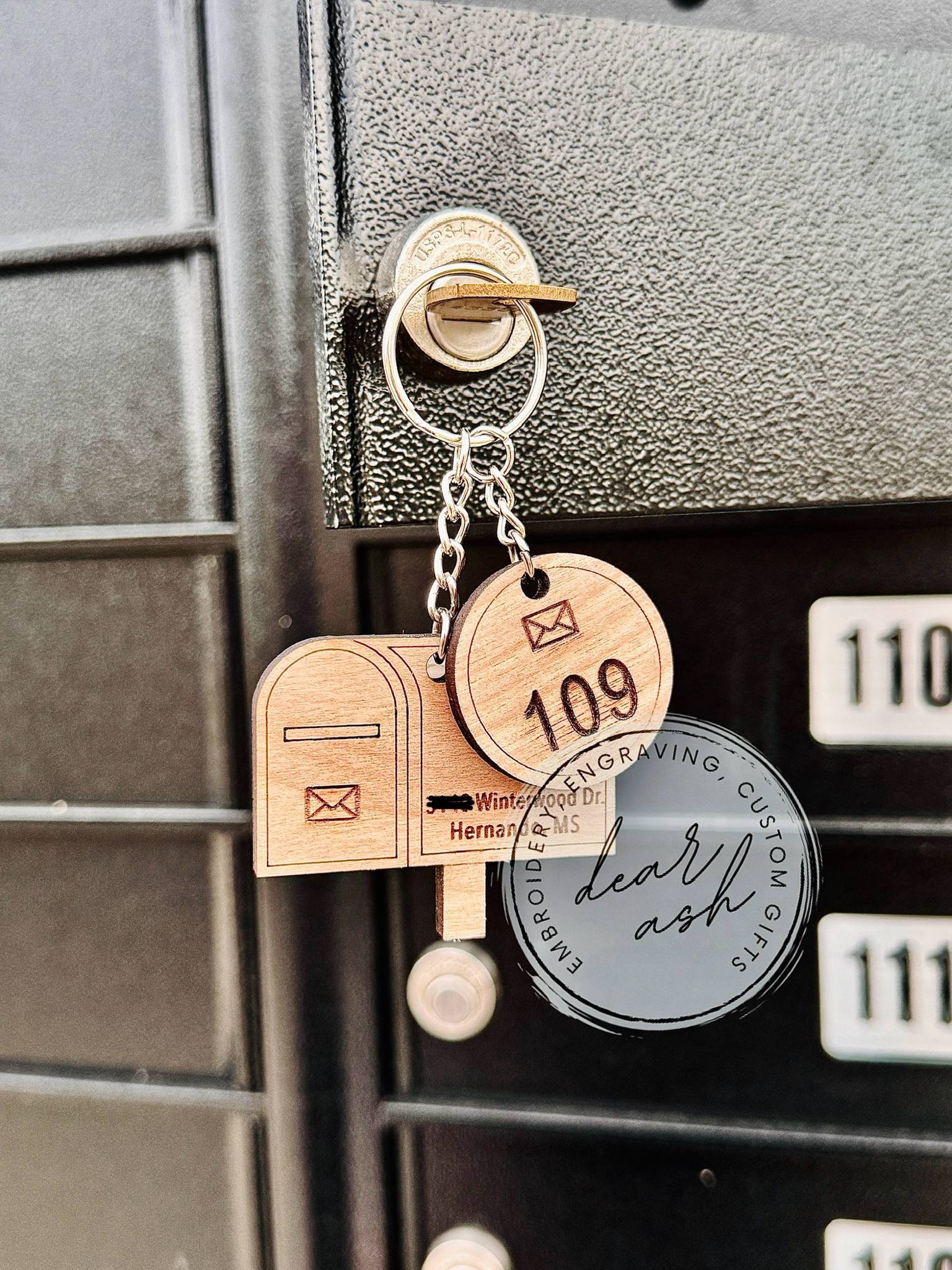 the cutest little custom keychain for your mailbox key! In the text box, tell us the mailbox number & address for the keychain.