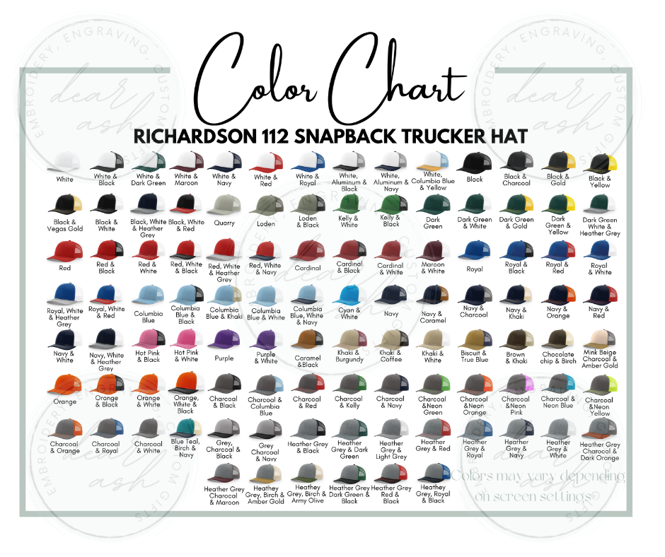 In the text box, tell me the color hat you'd like from the color chart!