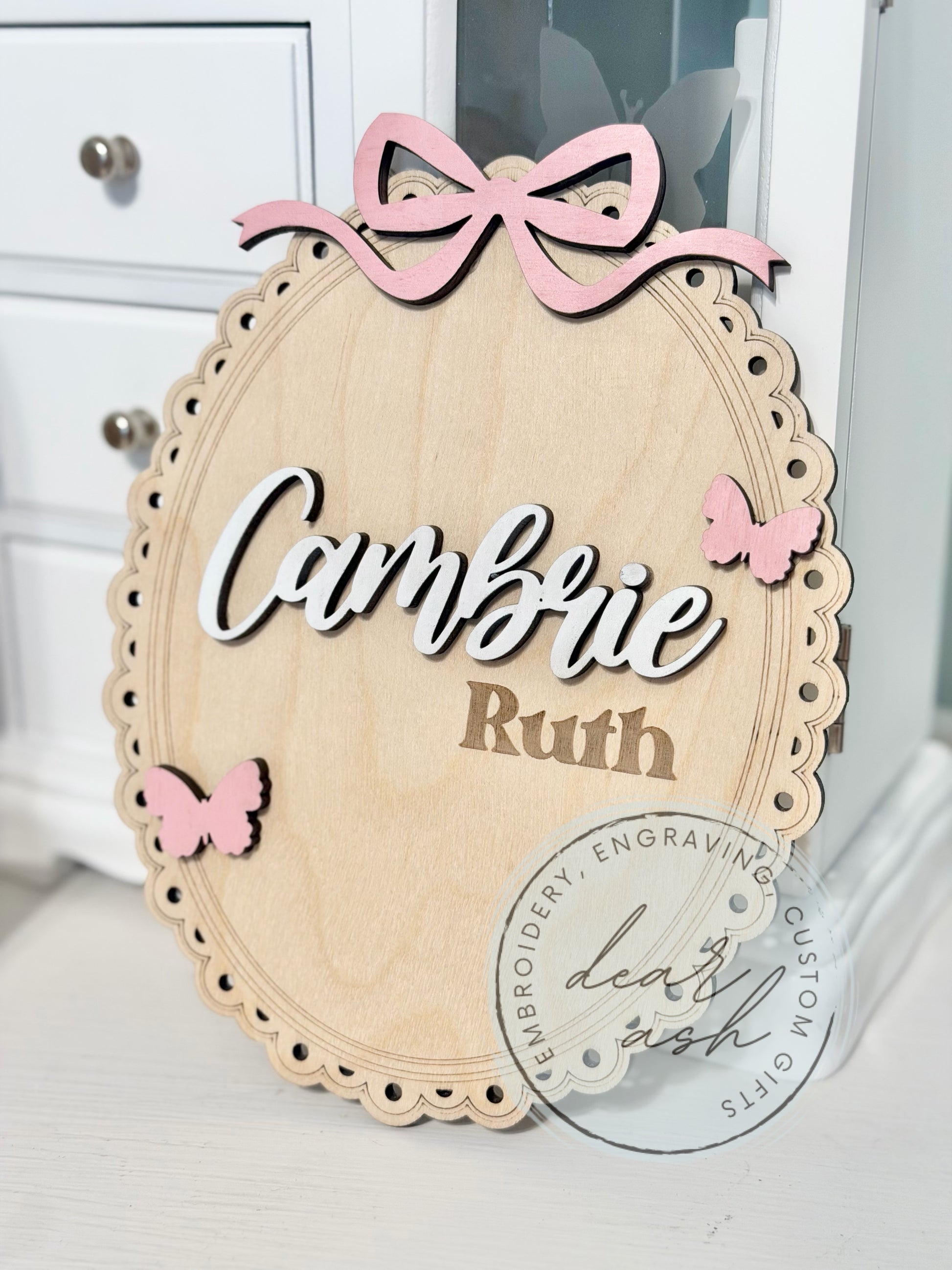 In the text box, type the name for the sign. These measure about 7.5” tall. You can also get this withOUT butterflies added, just request it in your notes!