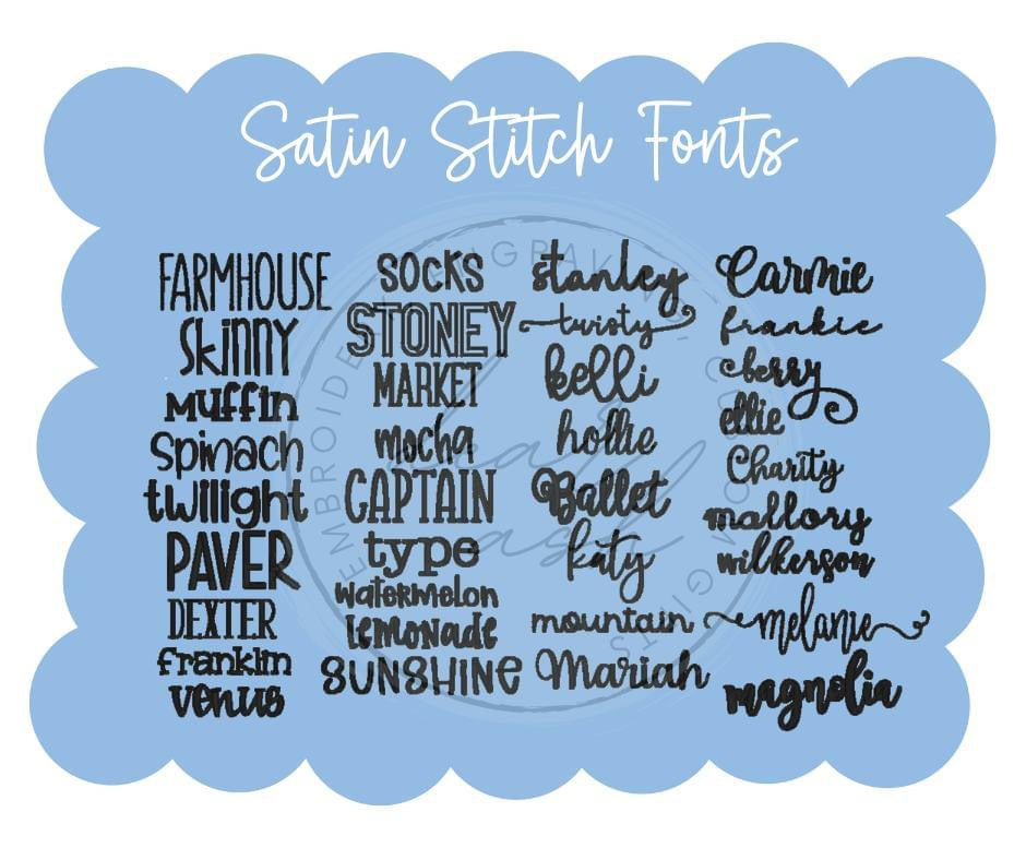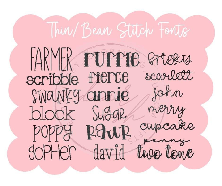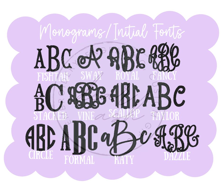 In the text box, include name or initial(s), font name, and thread color you'd like!
